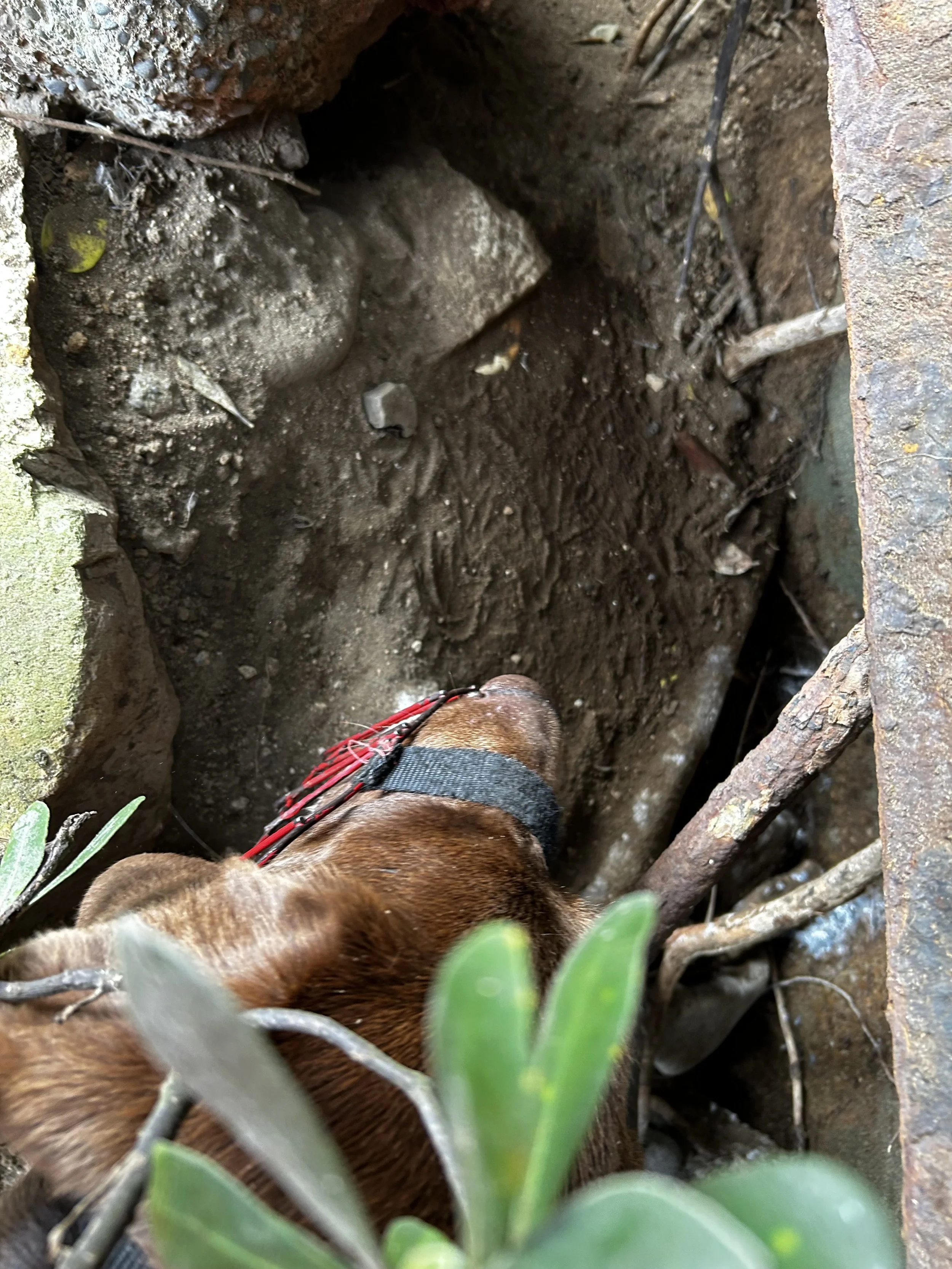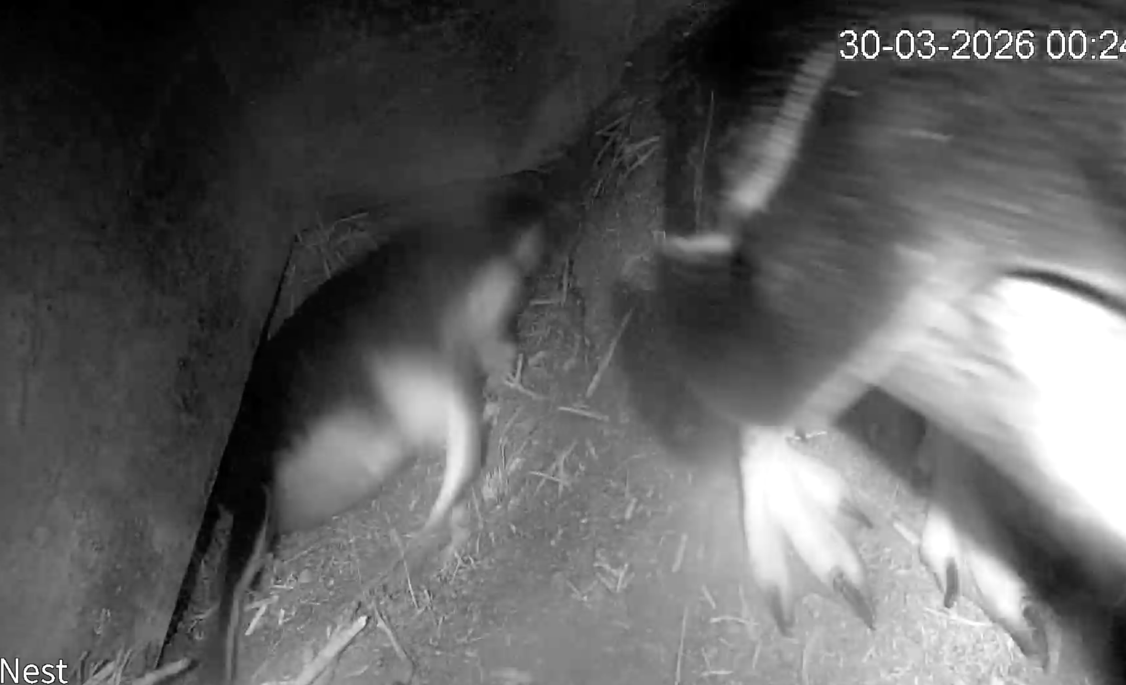 These photos show screen shots from a video of a couple digging a very deep hole in one corner of their home - the better to have their nest and chicks away from our eyes, and snug below ground. Digging is exhausting work! (Scroll down here to view full video). Last year we could not read the microchips of the birds because they were so far down the tunnel.